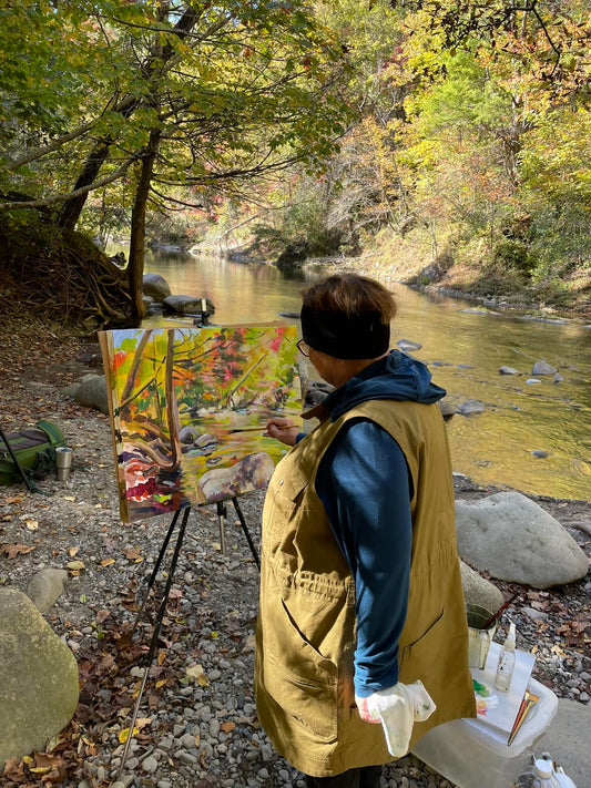 Chimney Top Picnic Stream - Oil Painting by artist John Adkins