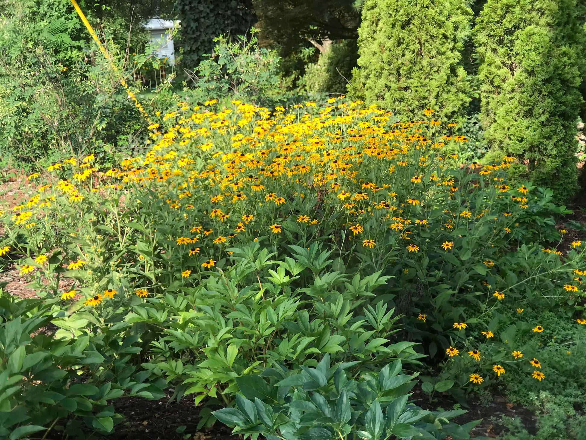 Painting - "Black-Eyed Susans" - Acrylic Painting by artist Charlotte Rollman. "Painted at the Knoxville Botanical Gardens. I painted this one so fast I forgot to take pictures while painting. I remember the day like yesterday as it is painted on a board and not canvas and being a transitional painting between my oil painting and acrylic painting. Even though it is hard to paint outside with fast drying acrylics, it feels better to me as